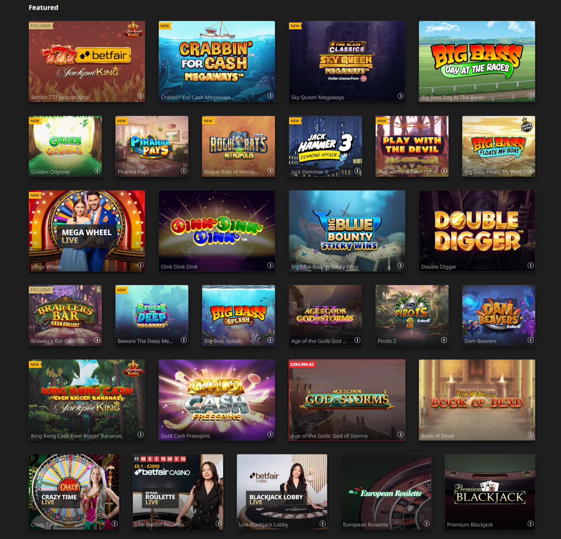 Slots – Prepare to be dazzled by the sheer variety and quality of slots available at Betfair Casino. With a catalog that's constantly updated with the latest releases, you'll always find something new and exciting to try your luck on. Betfair has partnered with some of the biggest names in the industry to bring you top-notch slot titles, ensuring an unparalleled gaming experience with every spin. From classic fruit machines to innovative video slots, the possibilities are endless in Betfair's slot collection.